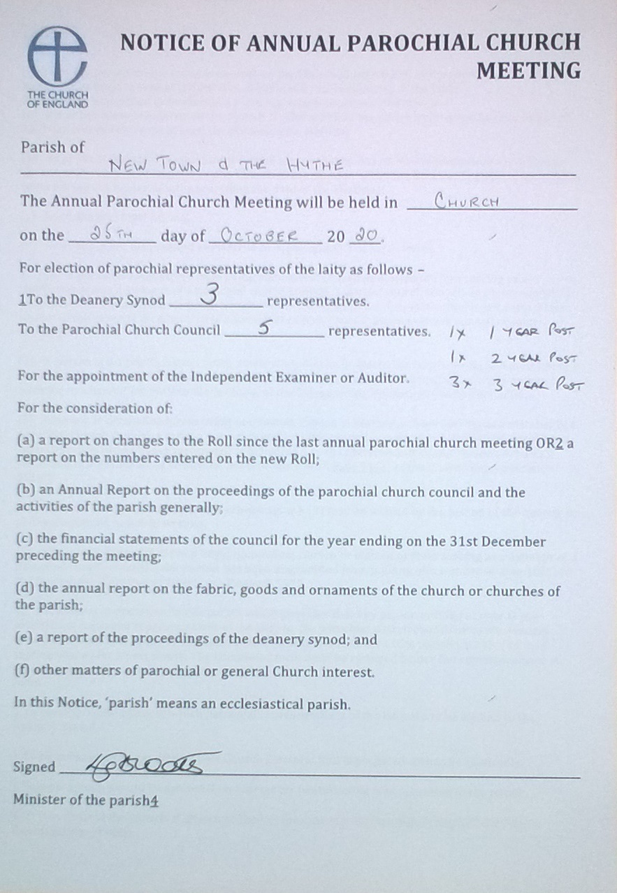 This will also include the election of Churchwardens, click here for details.