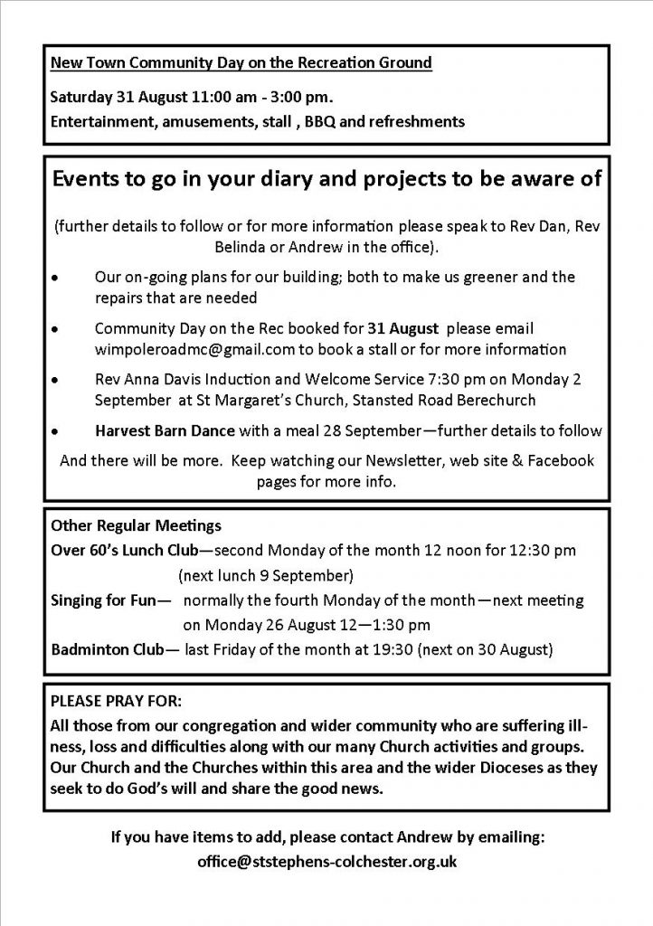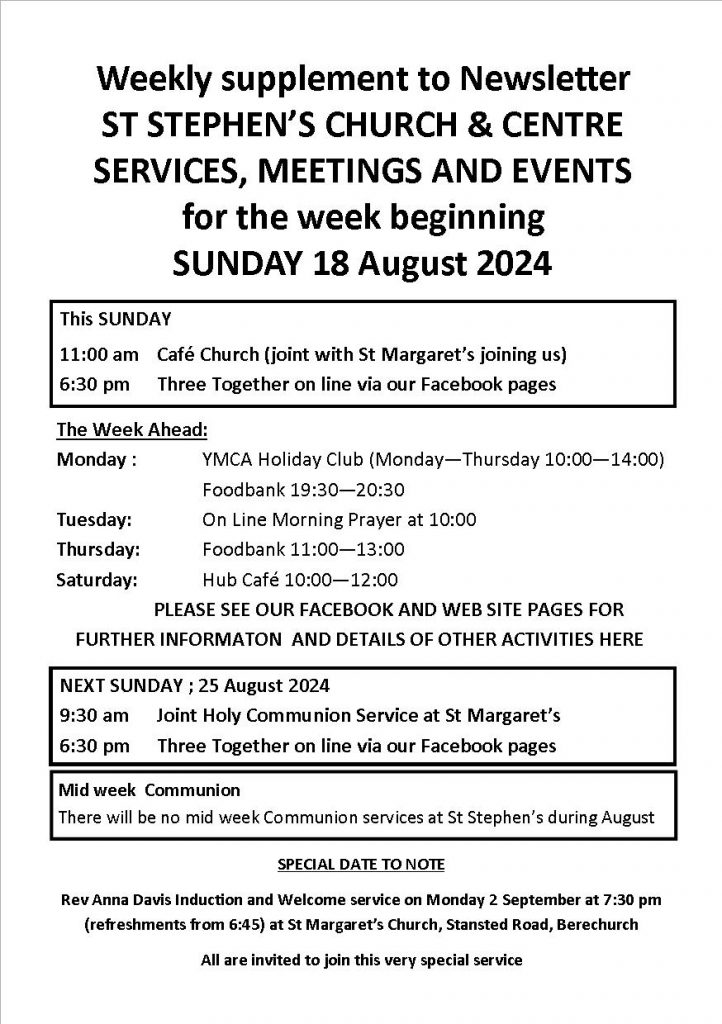 Weekly Notices Sunday 4 August 2024