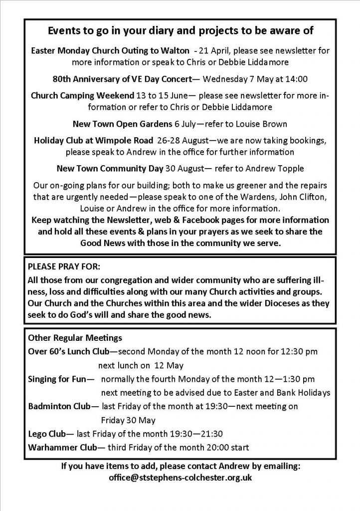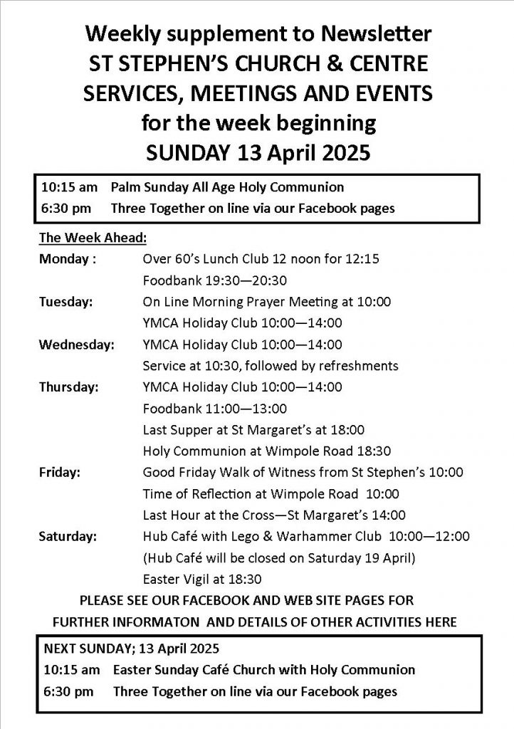 Weekly Notices Sunday 13 April 2025