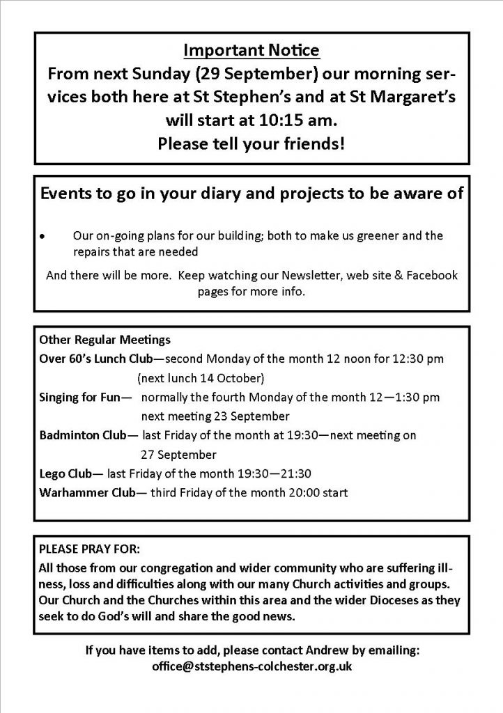 Weekly Notices Sunday 15 September 2024