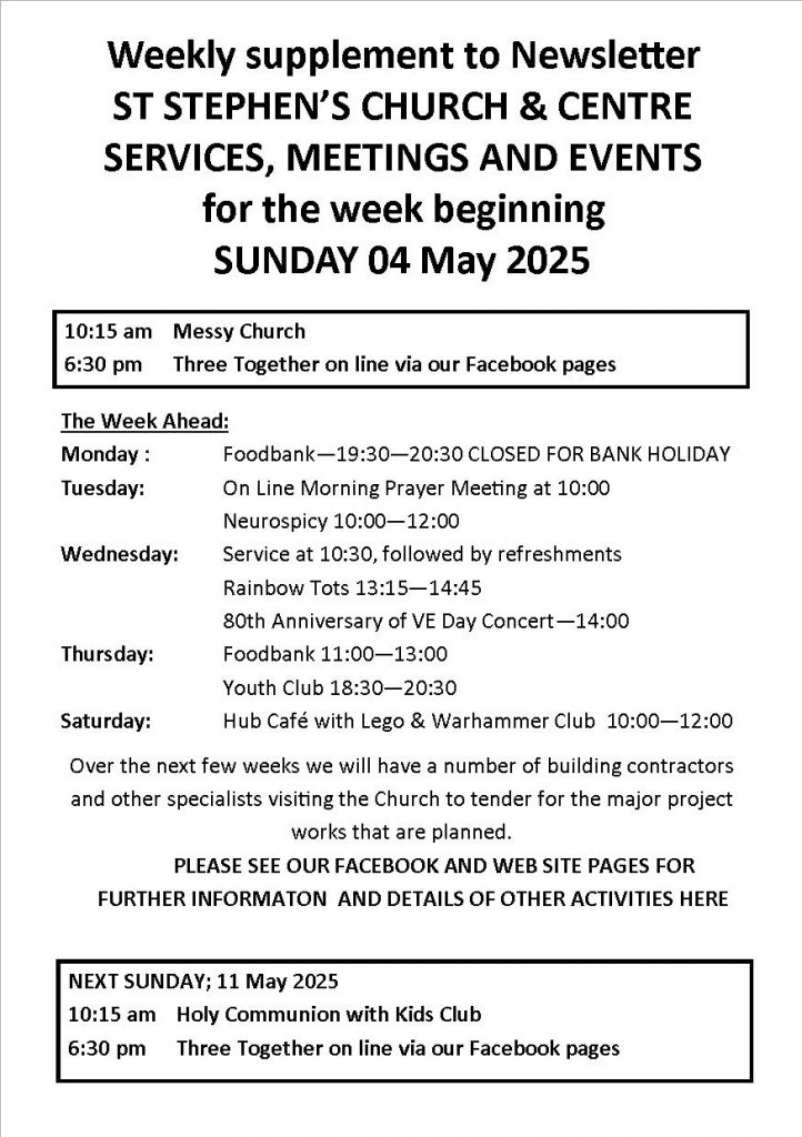 Weekly Sunday Notices 27 April 2025