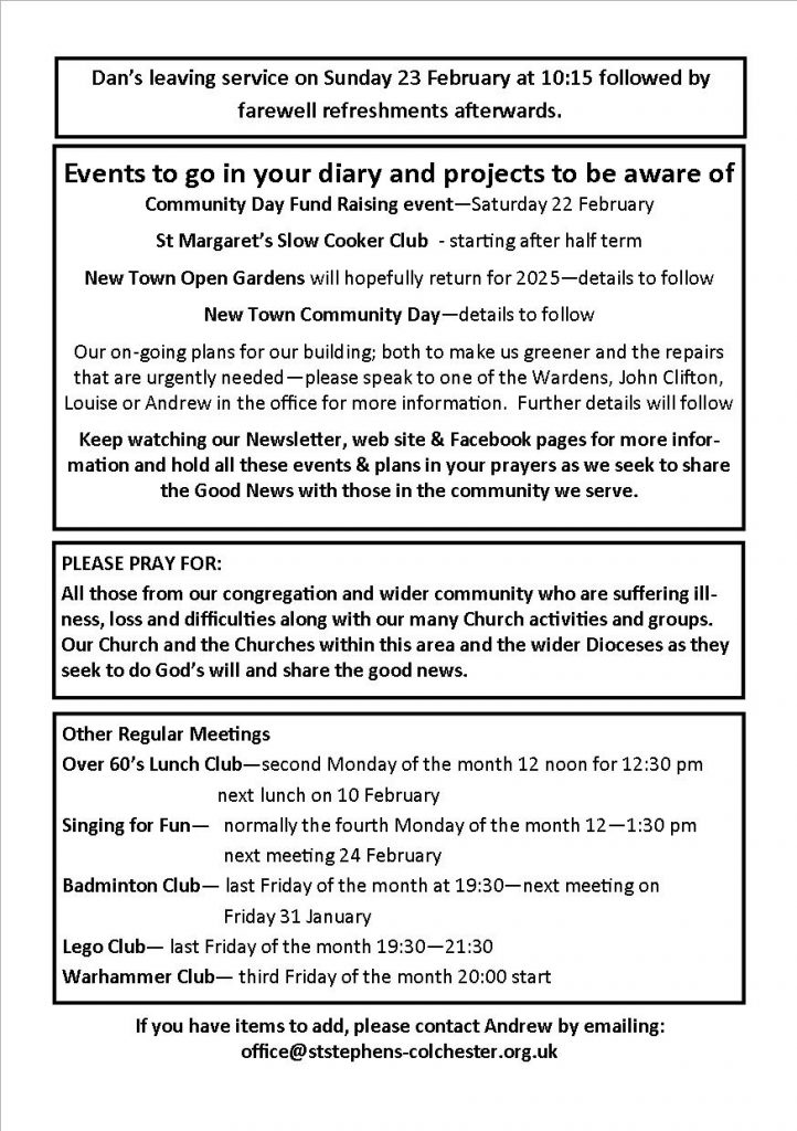 Weekly Notices Sunday 16 February 2025